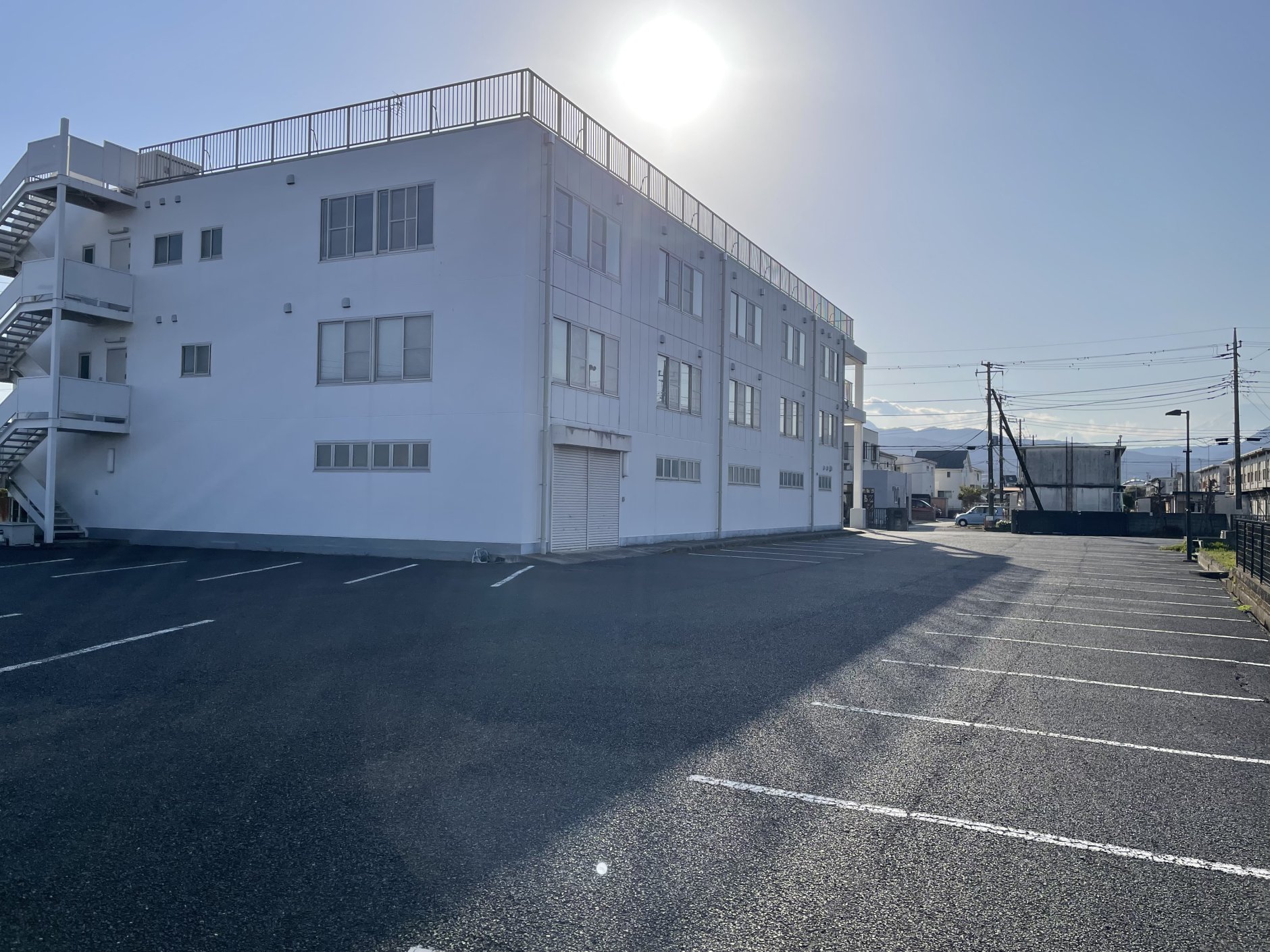 1 敷地には約40台ほどの駐車スペースがあり、多くの車を停めることができます。事業用拠点として利用する際にも使いやすい環境です。 2 建物は3階建てで、2階と3階は広いオフィススペースとして利用できます。間仕切りが少ないため、用途に合わせて柔軟に活用できます。 3 建物は約20年ほど経っていますが、雨漏りなどの修繕はすでに行っており、現在は問題なく使用できる状態です。工場用途ではないため、内部は比較的きれいに使われています。 |