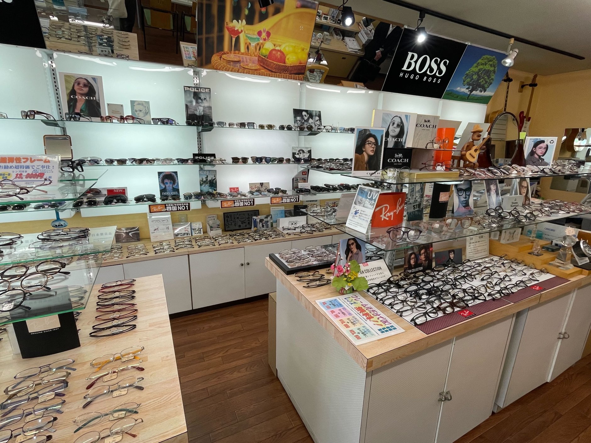 土居さんが事業を引き継いだのは昭和60年代。大阪での修行を経て店に戻り、宝飾・眼鏡・時計を扱う時代を経験しながら、事業の方向性を模索してきました。その中で「小さな店が生き残るためには、何かに特化する必要がある」と考え、当時まだ珍しかったサングラスに力を入れます。