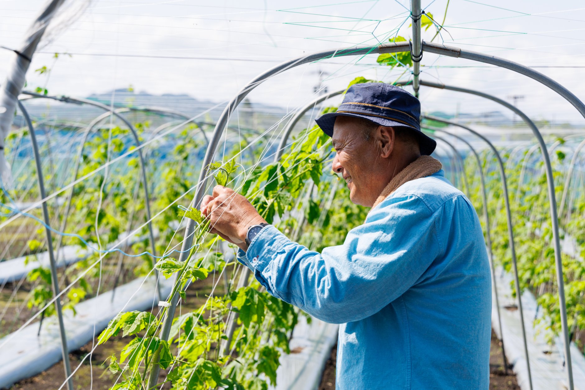 倉岡さんは、先代から農業を引き継ぎ、お茶やサツマイモ、里芋などを作る“二刀流農家”として活躍してきました。現在は奥様と支え合ってきた営農をお一人で切り盛りし、夏はゴーヤ、冬は干し大根の生産を中心に続けています。